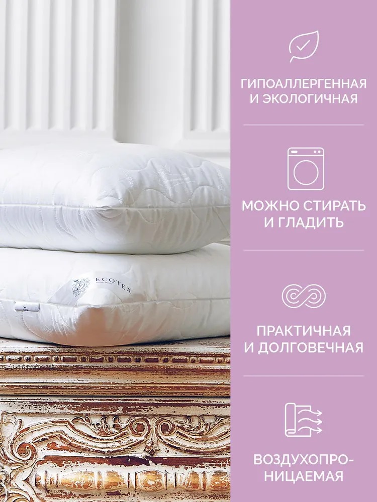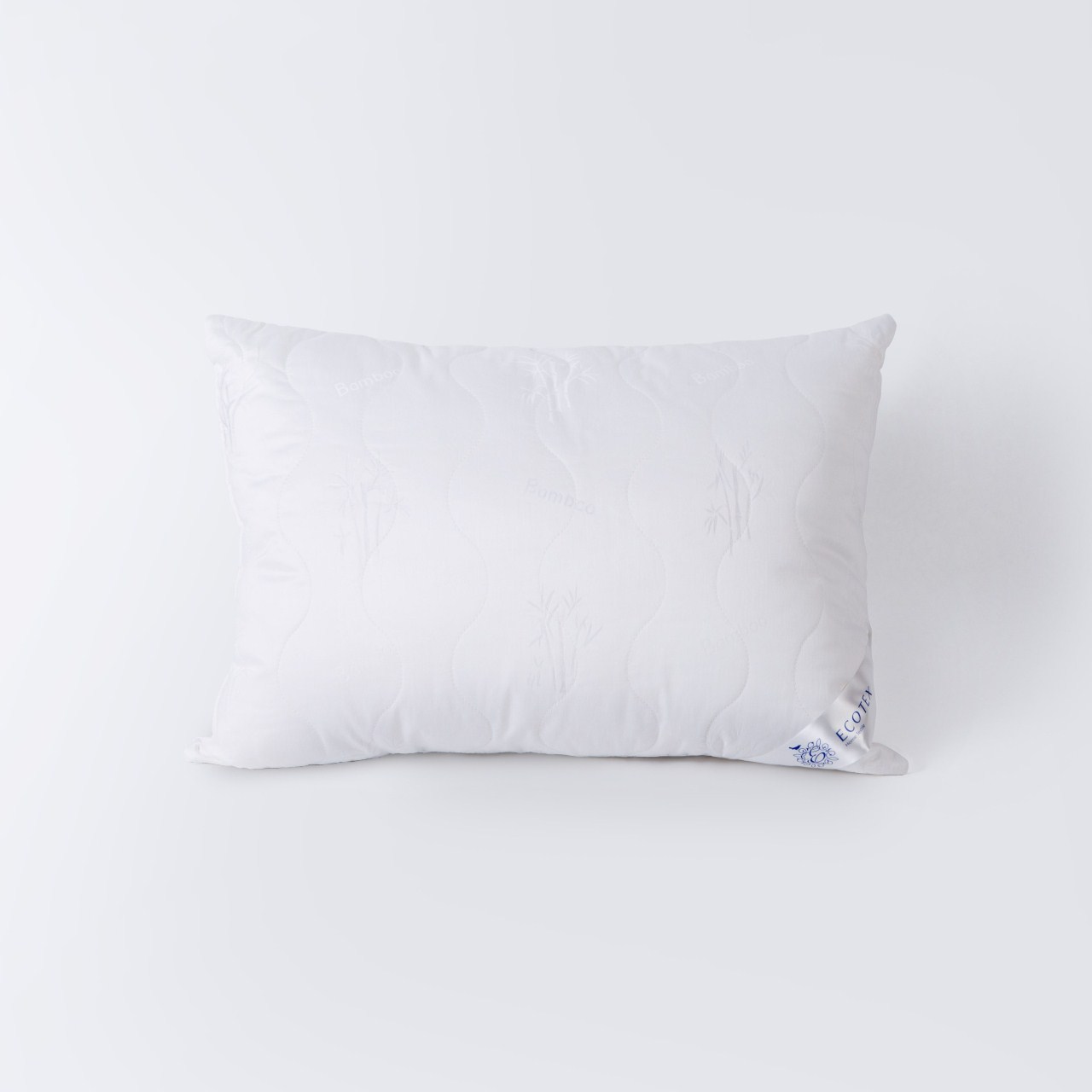 Бамбуковая подушка размером 50х70 для наволочек размером 50х70. Ткань чехла подушки - белоснежный сатин с жаккардовым тиснением.