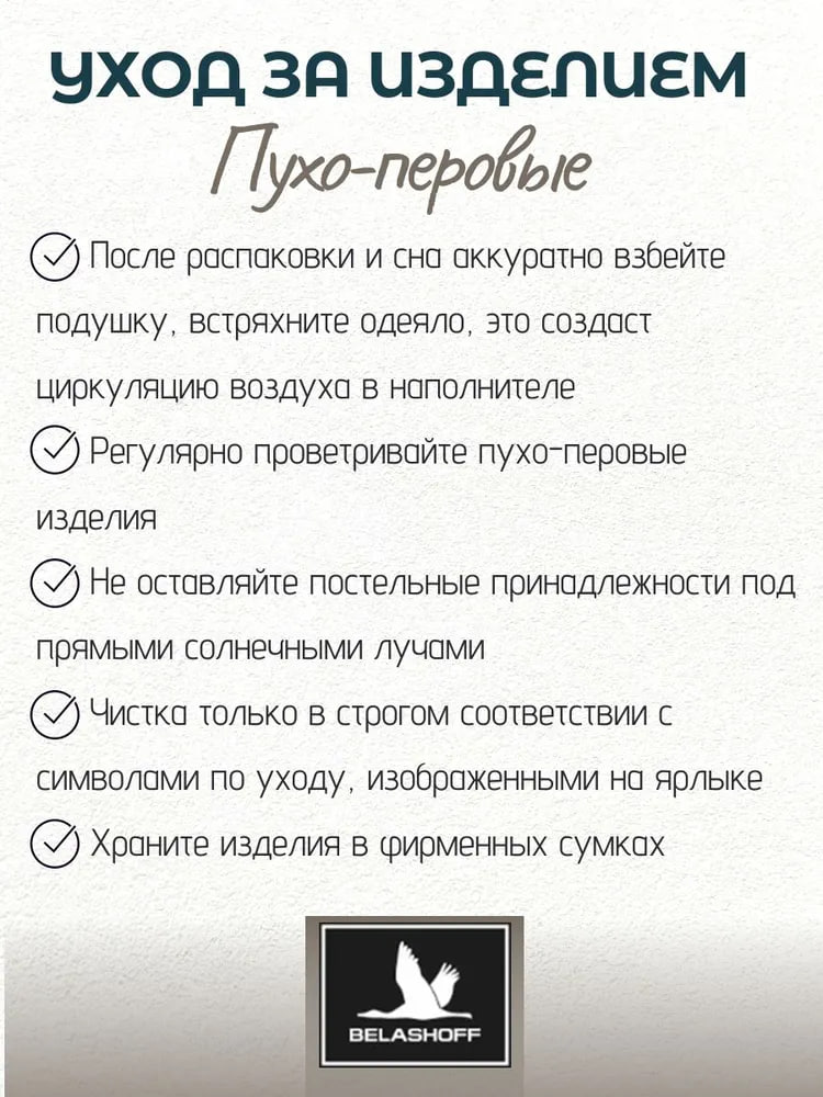 Подушка для сна наполнена отборных пухом 1-й категории. Пуховый наполнитель хорошо обработан и промыт. Не имеет резкого неприятного запаха.