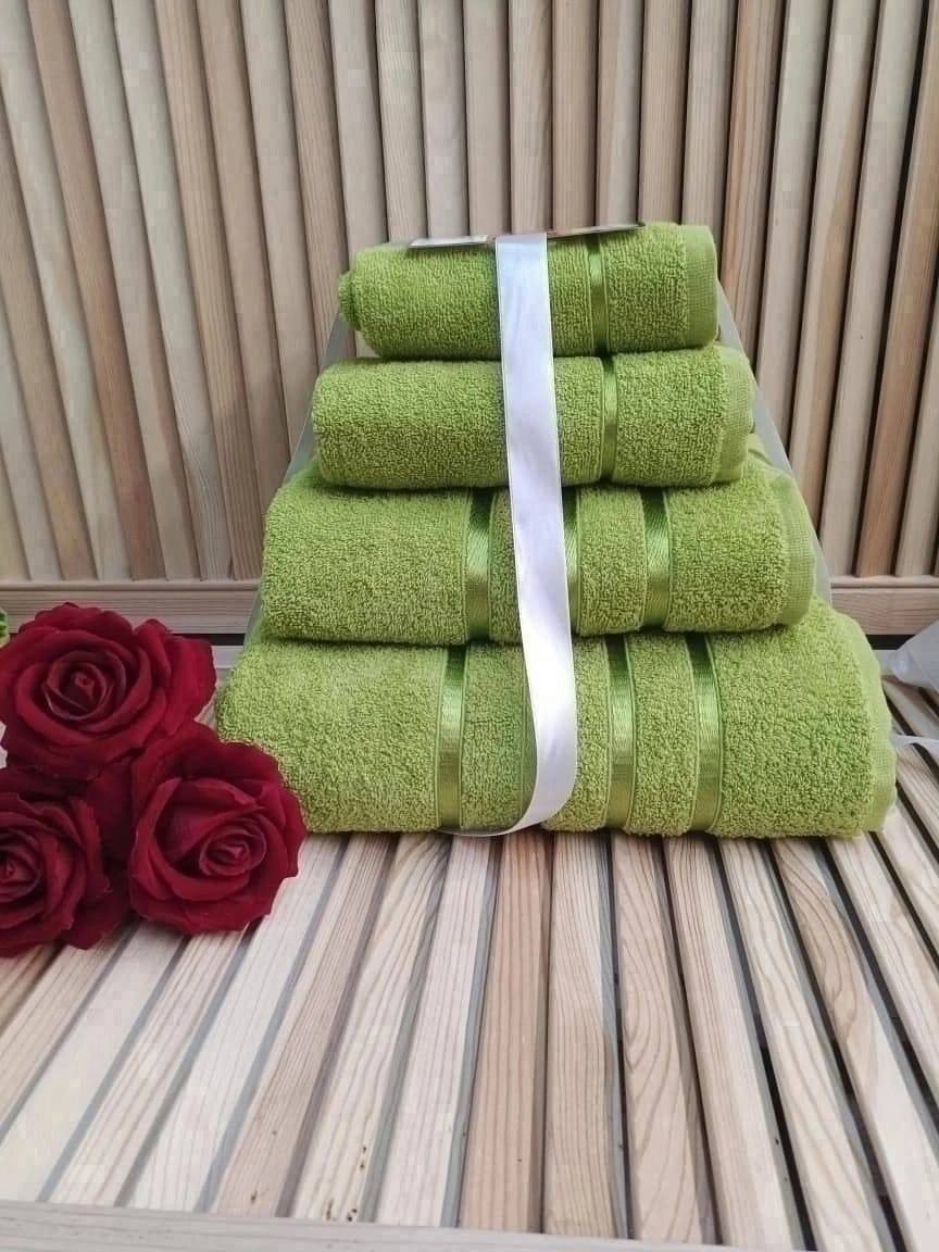 В комплекте 4 полотенца: 30x30 (1 шт), 30x60 (1 шт), 50x80 (1 шт), 70x130 (1 шт). Большое полотенце можно использовать для бассейна, для бани, для спорта, а маленькое полотенце хорошо подходит для лица, рук или ног или в качестве салфетки на кухню.